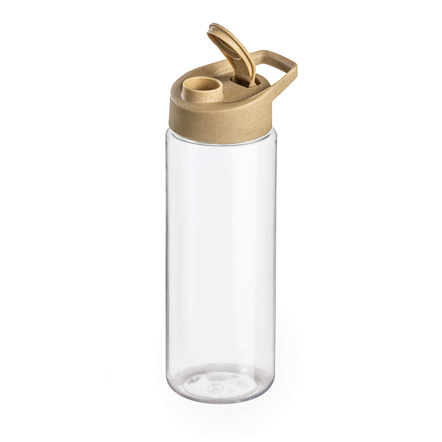 Botella recta . Capacidad 500cc. Material libre de BPA. Tapa de polipropileno + FIBRA DE MADERA. Pico rebatible con sorbete. Pared super rígida no flexible de material PET. Alta calidad en sus terminaciones y materiales. Medida: 17,5 cm de altura.